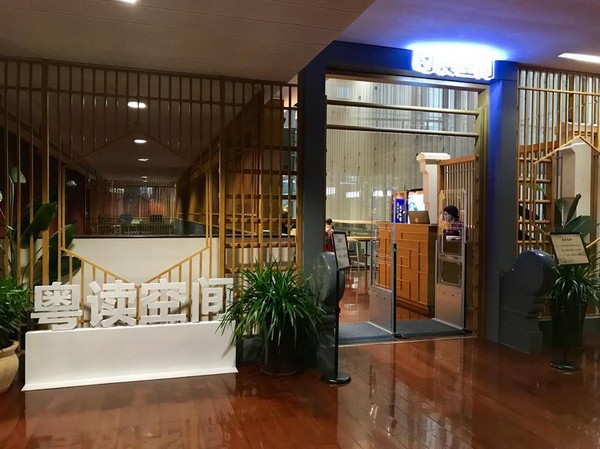 “粤读空间”位于广东省博物馆三楼夹层,占地200平方米,根据功能分为5个区域:服务台、数字资源查阅区、纸质图书藏列区、休闲阅览区和寄存区。“粤读空间”共有上架图书三千余册,以省博物馆出版物、文化艺术类图书为主,特设儿童读物与盲人书专柜,并配有计算机、触摸屏等电子阅览设备,供观众观看文化艺术主题的讲座,查阅已开放的省博物馆馆藏文物资源信息。