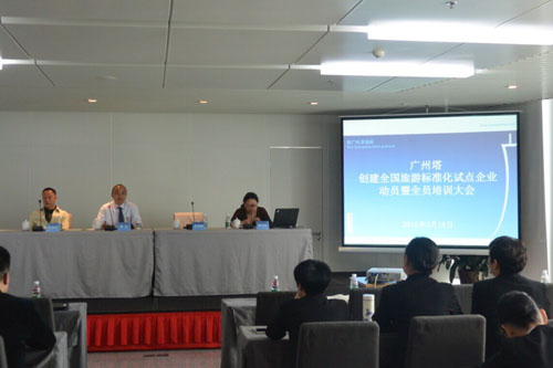 2015年3月18日,广州塔召开创建全国旅游标准化试点企业动员暨全员培训大会,广东省旅游局行业管理处副处长孔宪辉,广东省标准化研究院主任李江虹、副主任胡葳,广州塔总经理罗玖,广州塔领导班子、各部门负责人和员工代表等60余人参加了会议。